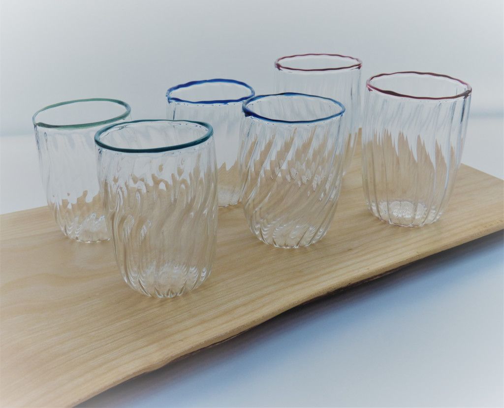 Zeichnungen und Skizzen dienen oft als Vorlage für meine Gläser, ob ein Stück aber wirklich gelungen ist und reproduziert werden kann, sehe ich erst nach Fertigstellung eines Prototyps. Zudem kommen mir während des Glasblasens oft noch Einfälle, so dass ich die eigentliche handwerkliche Arbeit auch direkt als kreativen Moment und Impulsgeber ansehe und nutze.