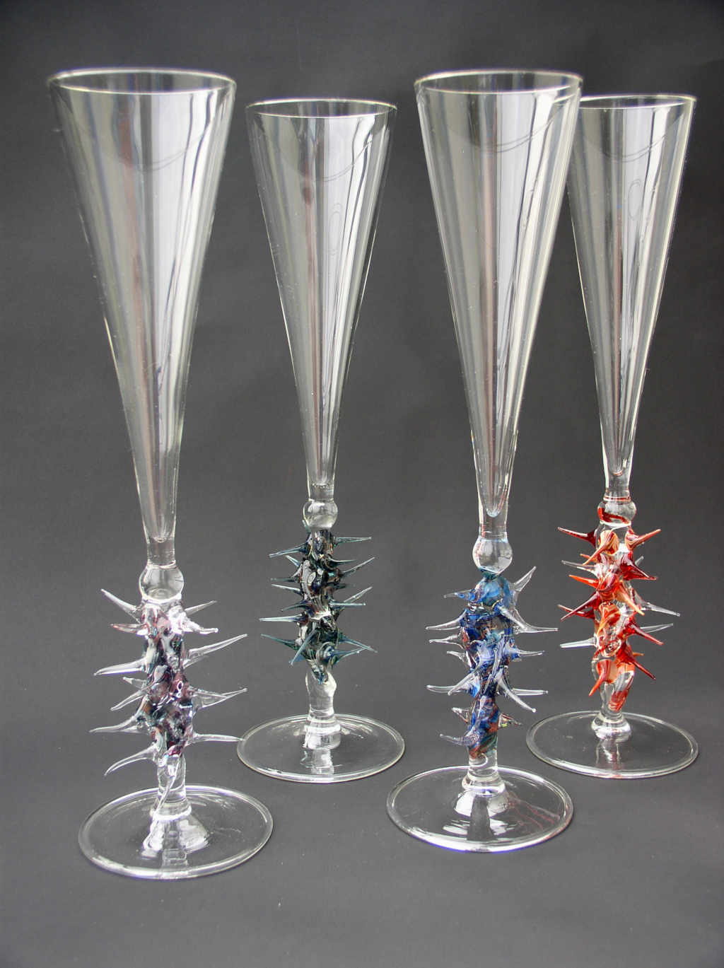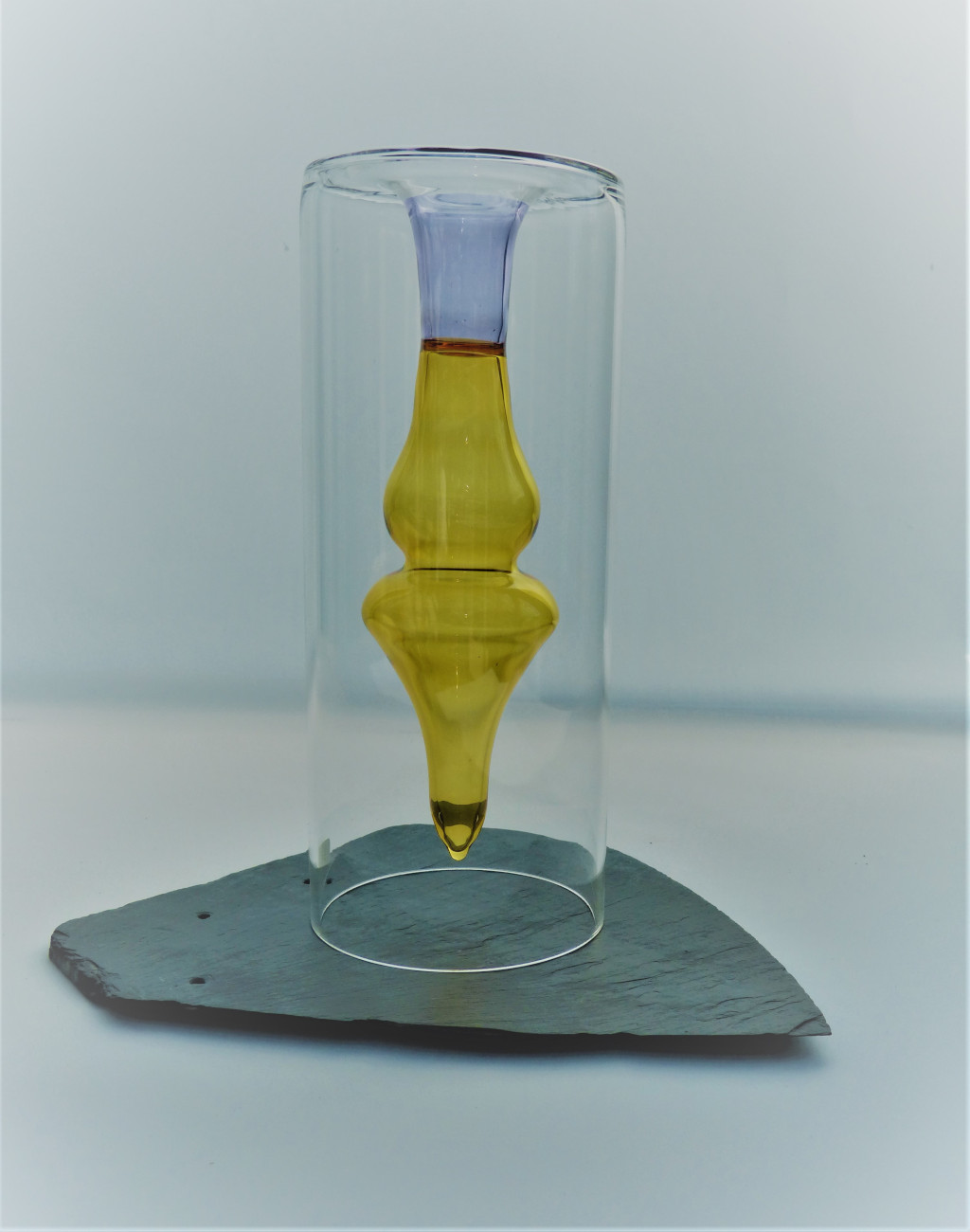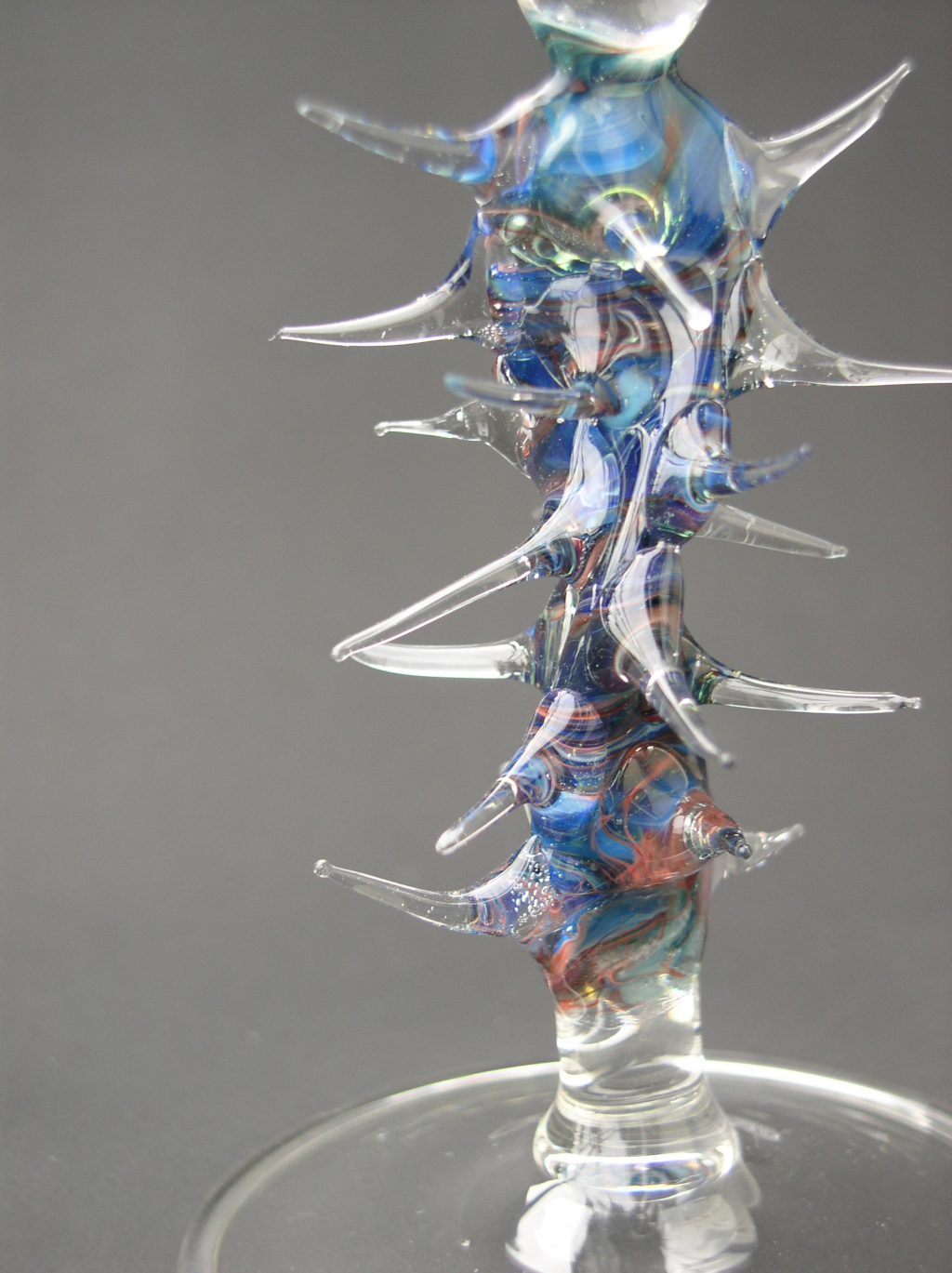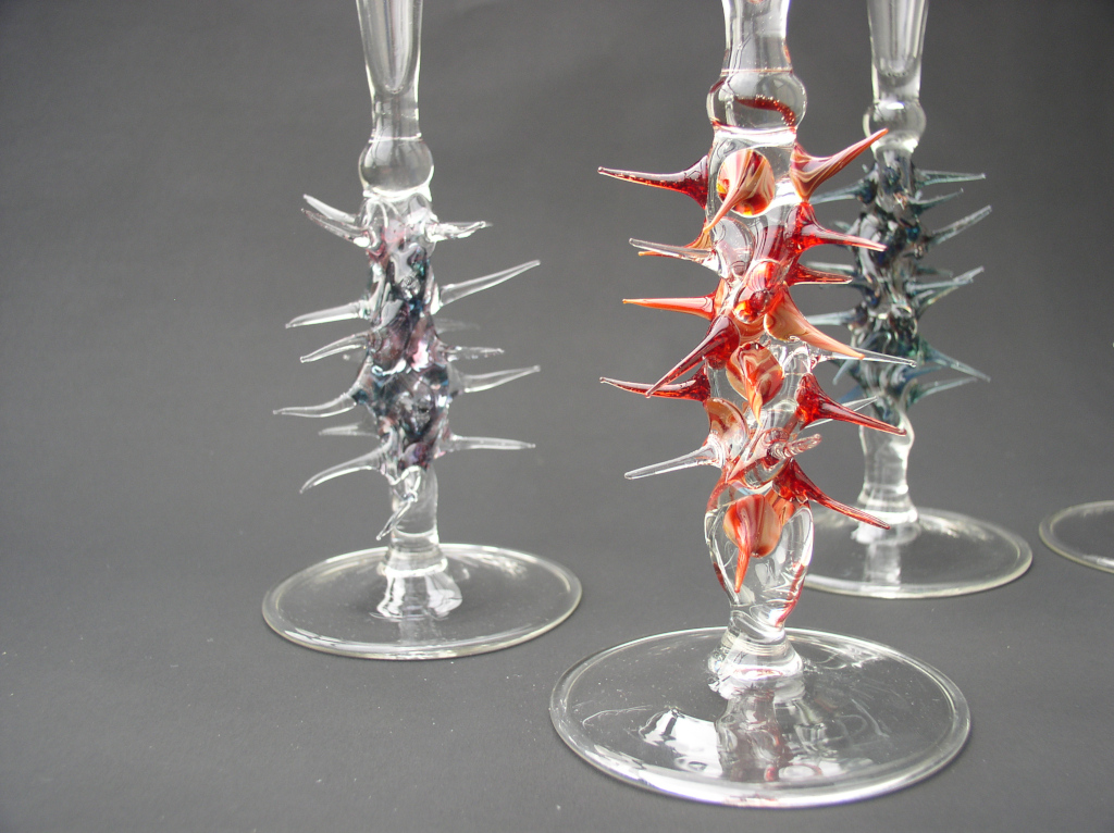 Meine Arbeiten sind meist frei „vor der Lampe“ geblasen, bei größeren Werkstücken verwende ich auch eine Drehbank.