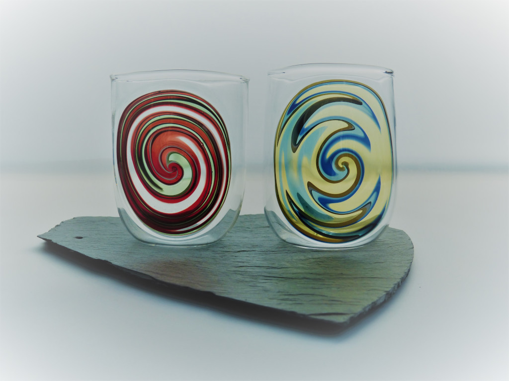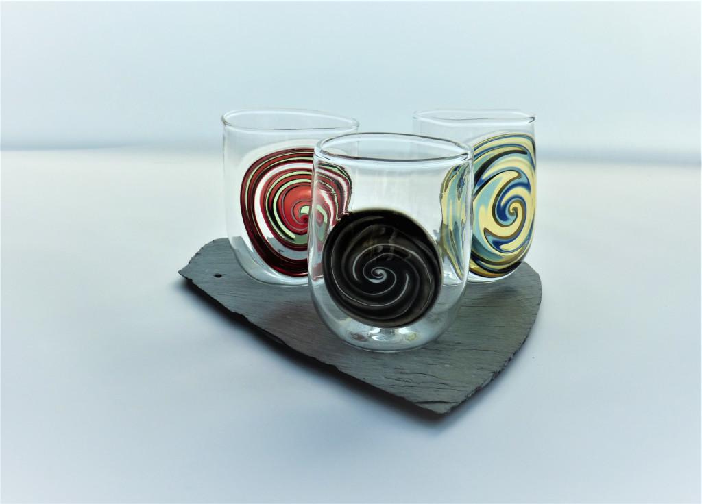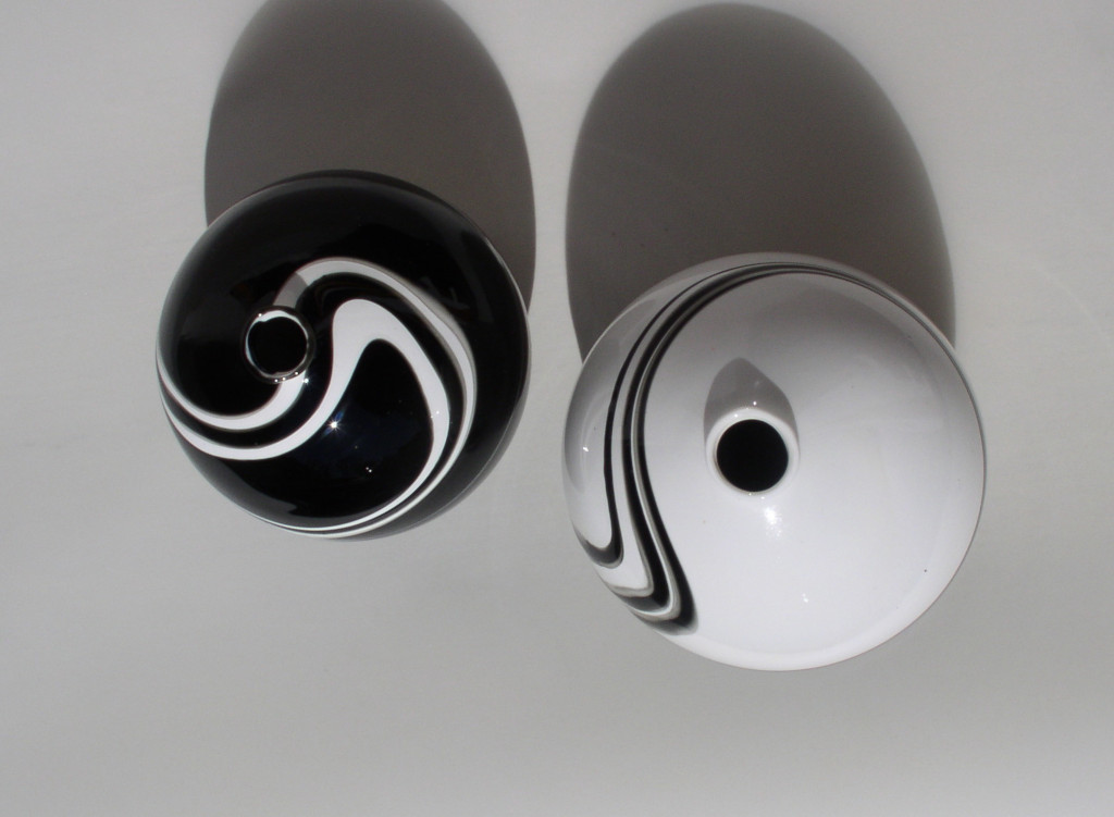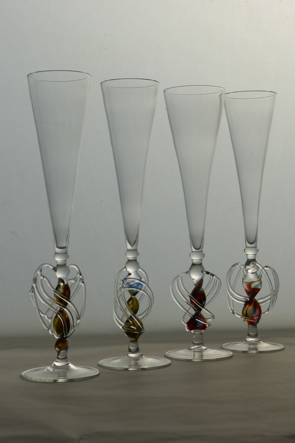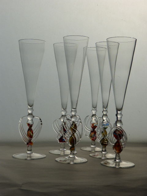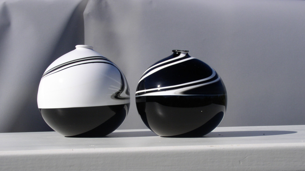 Meine Arbeiten sind meist frei „vor der Lampe“ geblasen, bei größeren Werkstücken verwende ich auch eine Drehbank.
